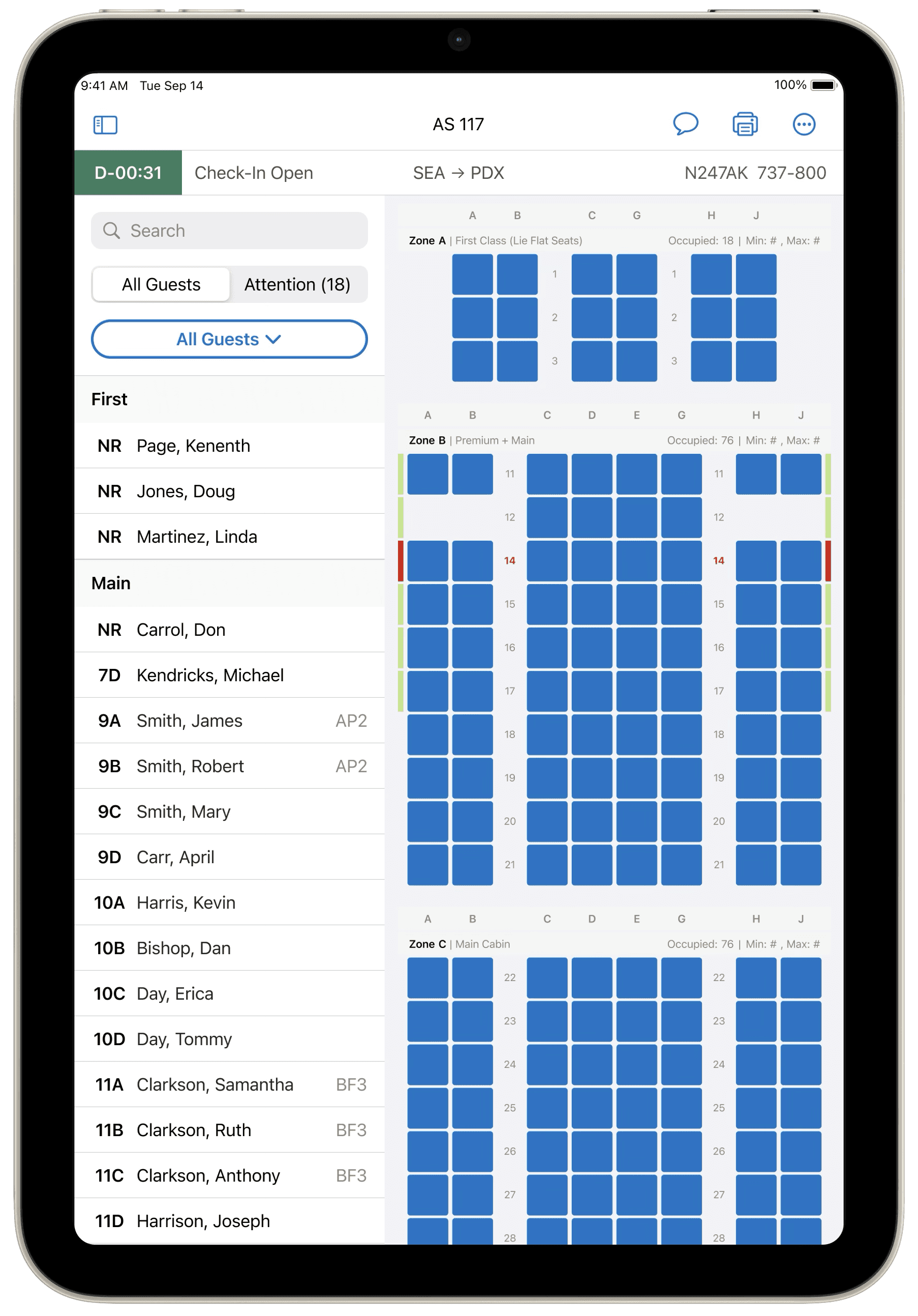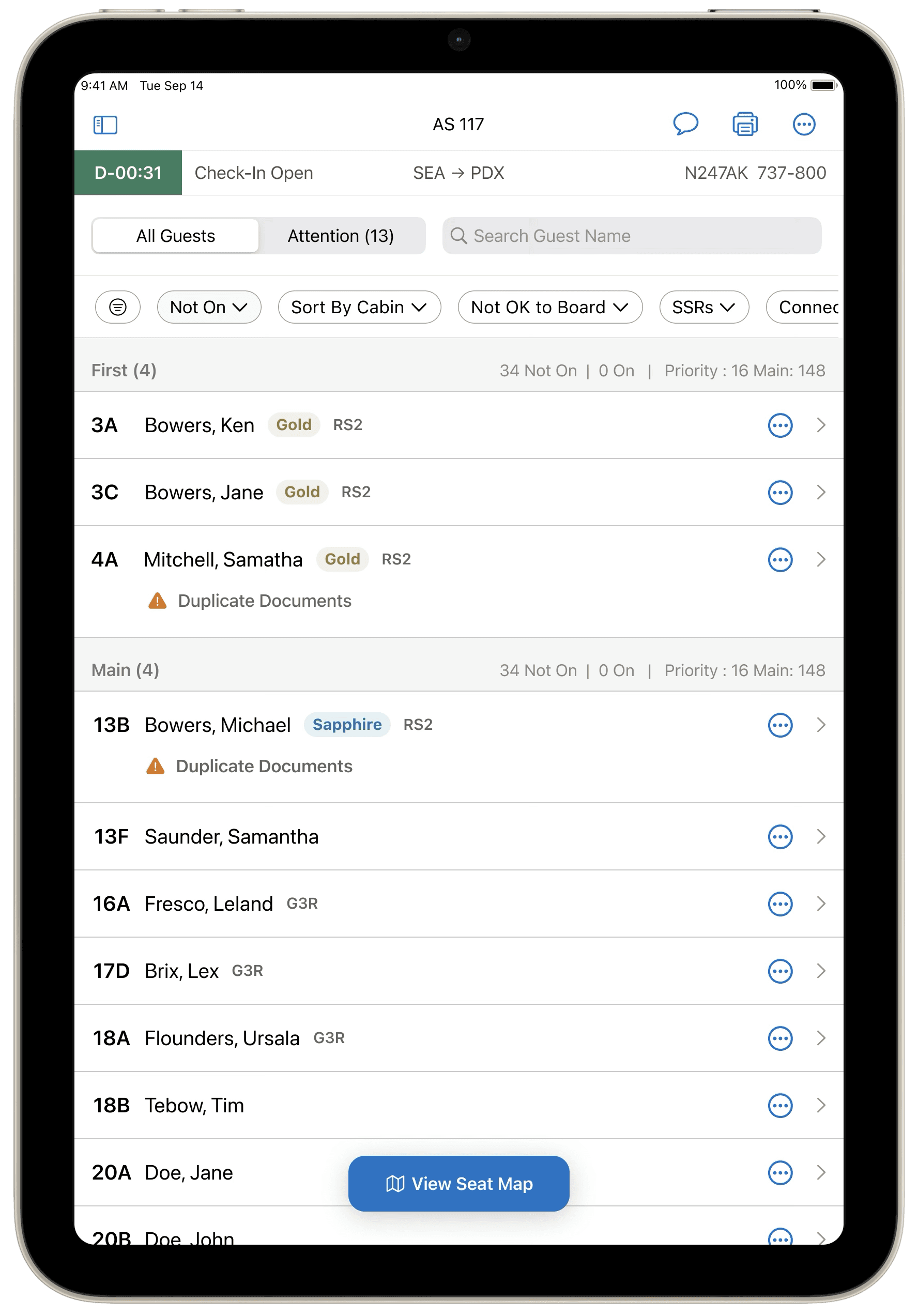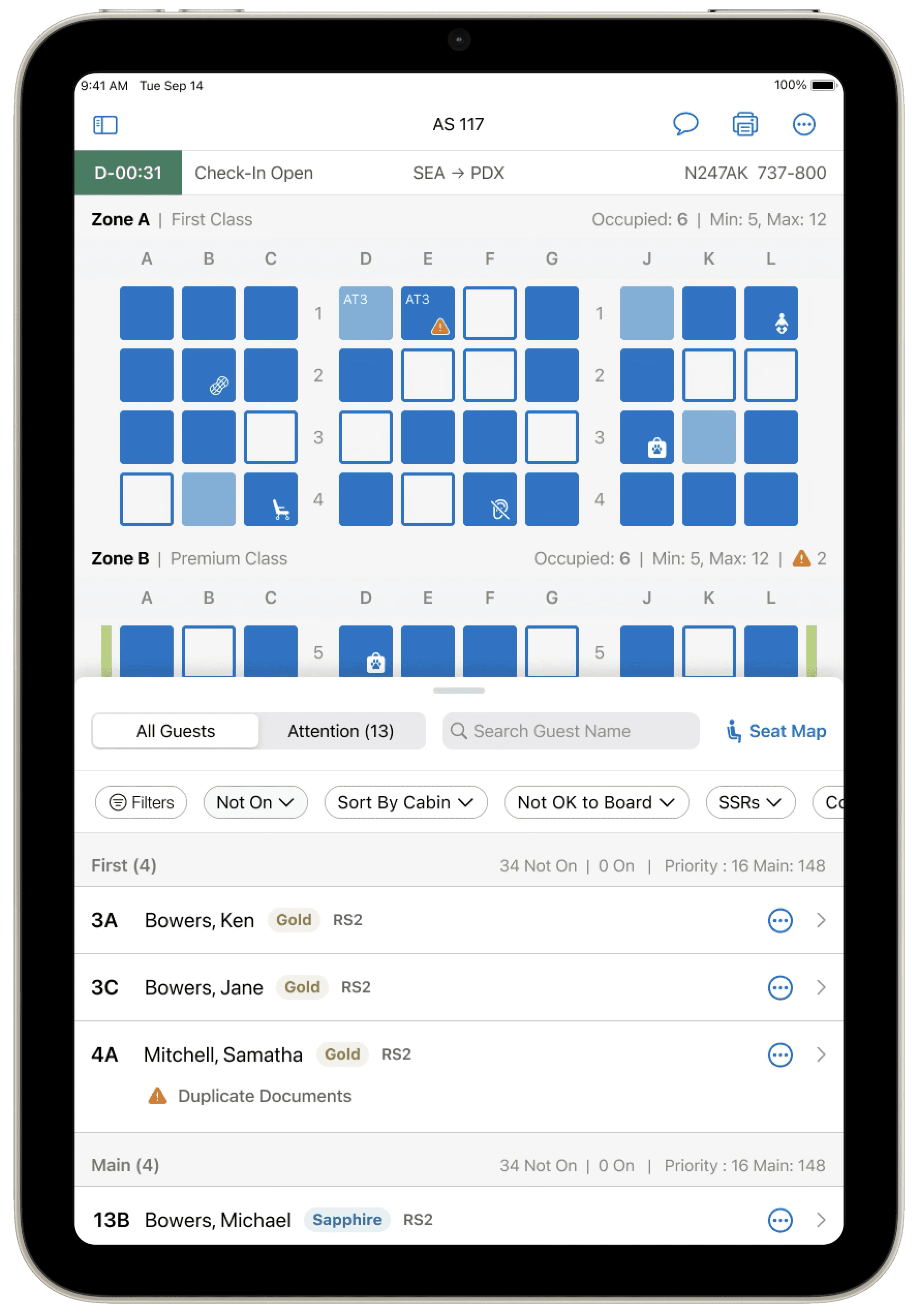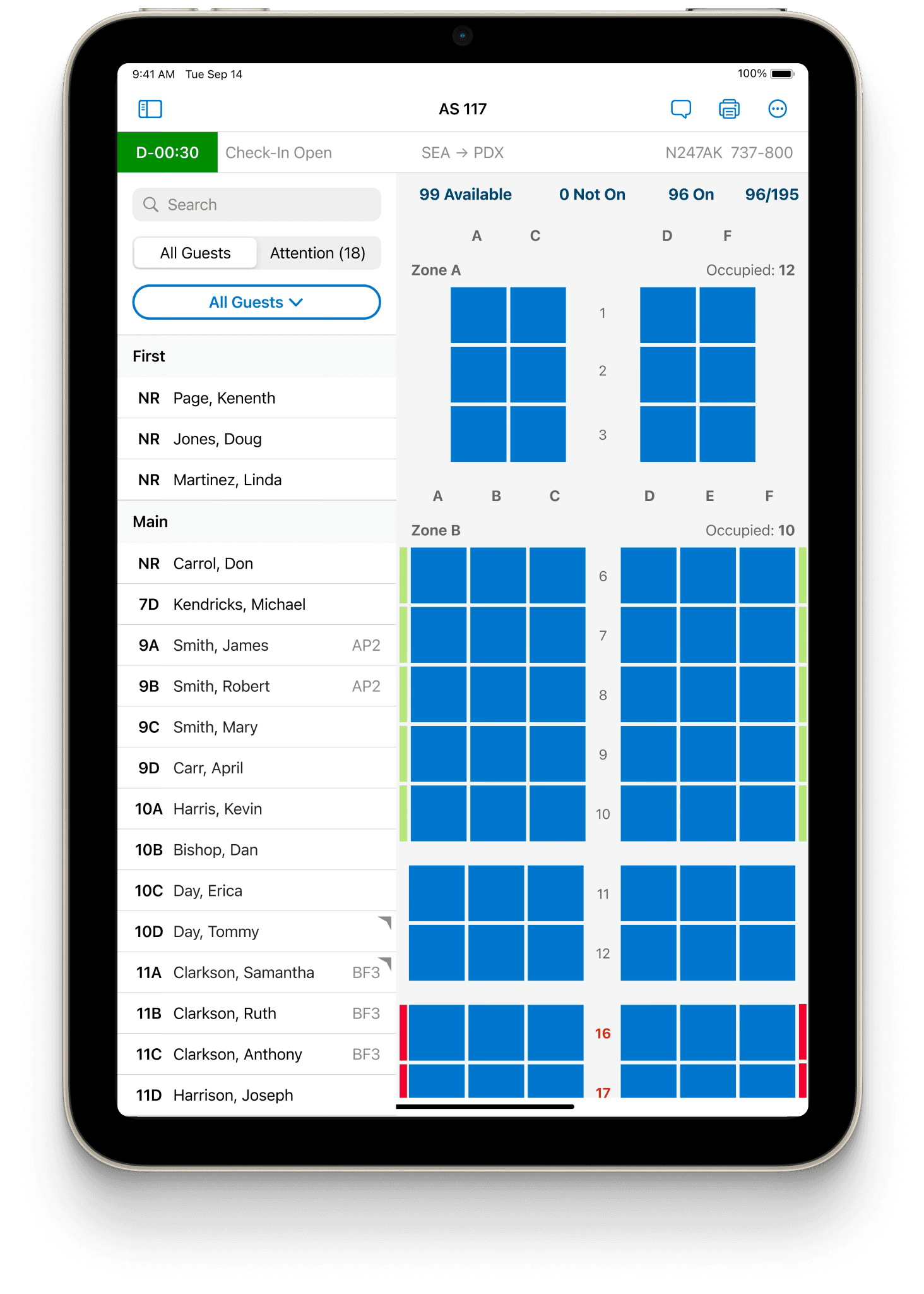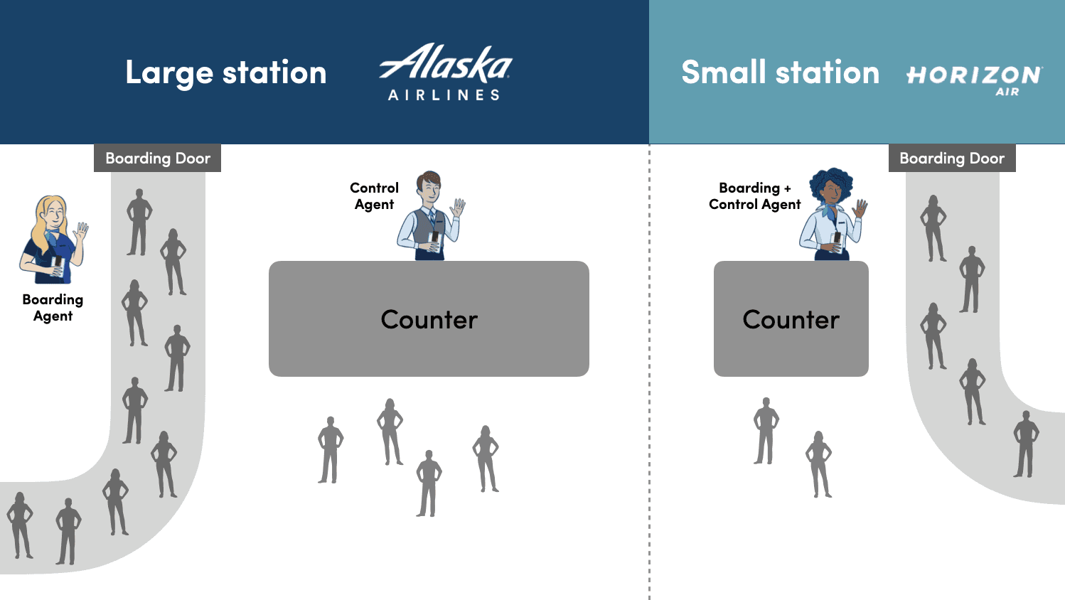Large hub stations (>250 daily departures) are staffed with 2 agents per flight – a Control Agent and Boarding Agent, who each use a different iPad application. Meanwhile, small regional stations (<10 daily departures) have just 1 gate agent per flight. Yet, they must still use 2 separate applications, which is very inefficient for their workflow.