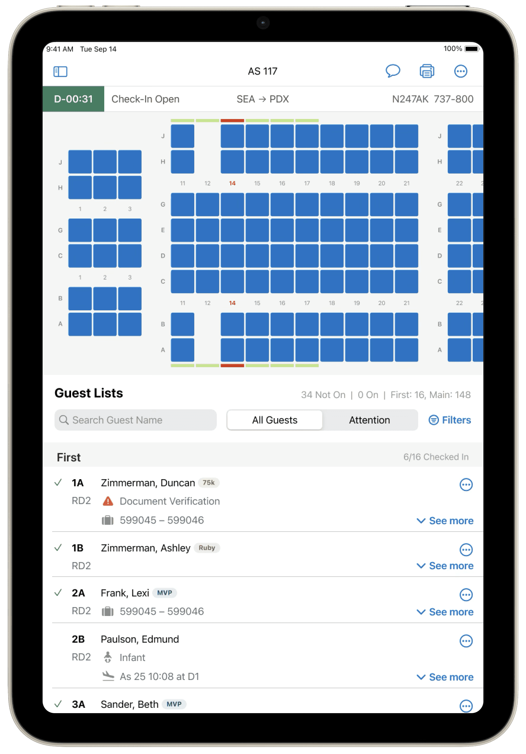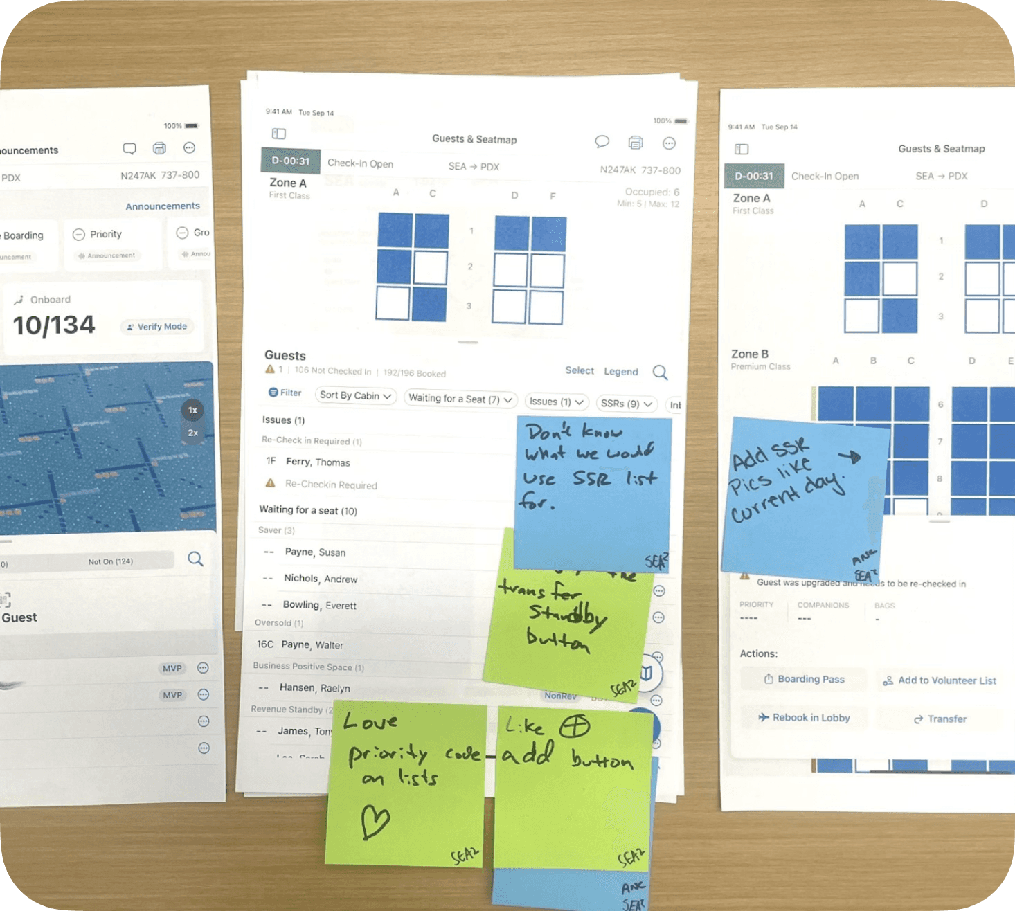 I iterated on the designs based on the feedback from this workshop, and arrived at the following final design solution for Alaska and Hawaiian Airlines' gate agent app.